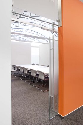 Im zweiten Obergeschoss wurden variable Schulungsräumen mit moderner Präsentationstechnik realisiert. Hier lag der Schwerpunkt auf der Schaffung hochwertiger Flächen für Schulungszwecke und einer neuen Personalkantine.